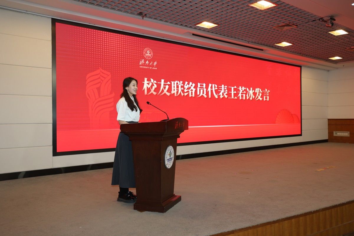 淄博校友会常务副秘书长、2012届工业设计专业校友吴克强作为地方校友会代表发言,分享了校友工作的经验与感悟,他鼓励新一届联络员主动融入校友网络,为母校与校友的互动搭建桥梁。马克思主义学院思想政治教育专业毕业生王若冰作为校友联络员代表发言,她深情回顾了在济大的求学时光,表达了对母校的感恩之情,并承诺将不负重托,积极履行联络员职责,为校友联络工作贡献力量。
