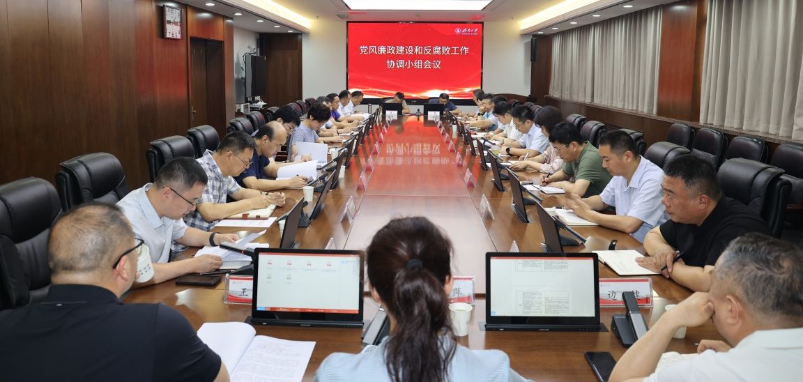 6月27日,学校召开党风廉政建设和反腐败工作协调小组会议。学校党委常委、纪委书记、省监委驻校监察专员续铁主持会议并讲话,党风廉政建设和反腐败工作协调小组成员参加会议,相关部门单位负责人列席会议。