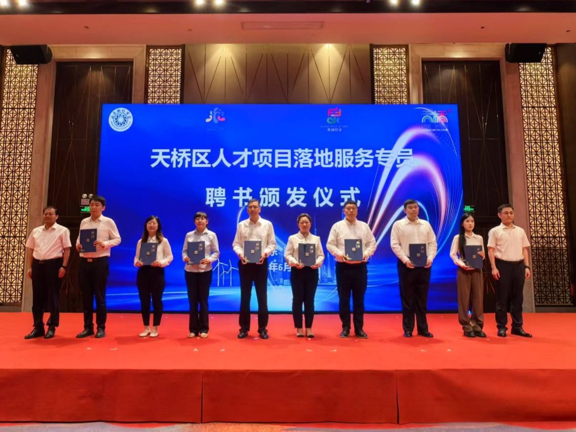 活动现场颁发了2025年度济南市科技副总、天桥区人才项目落地服务专员聘书。来自山东大学、开云kaiyun官网等驻济高校的8位专家学者受聘担任“科技副总”;天桥区选派17名干部担任人才项目落地服务专员。