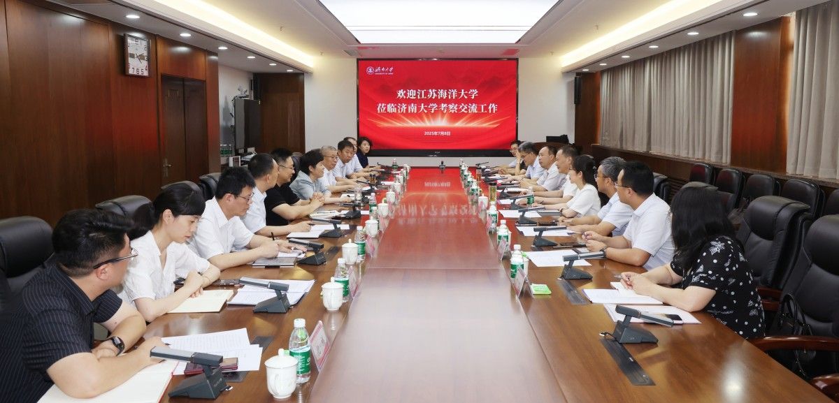 7月8日,江苏海洋大学党委副书记、校长汤建,党委常委、副校长金芙蓉,党委常委、宣传部部长王波等一行来校考察交流。学校党委书记刘春华,副校长徐征和,党委常委、宣传部部长卢旺出席座谈会。会议由徐征和主持。