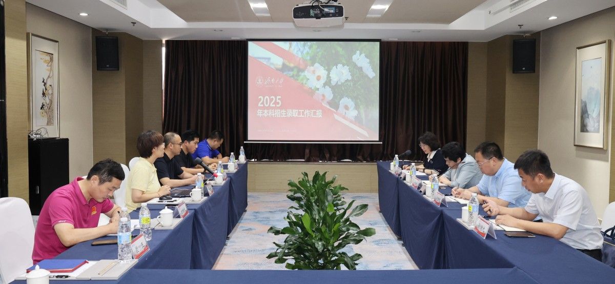 7月29日上午,学校召开2025年本科招生进展工作汇报会。学校党委书记刘春华,党委副书记、校长刘宗明出席会议,党委常委、副校长王霞主持会议。党委办公室 校长办公室、教务处 招生办公室相关负责人,以及2025年招生录取工作组成员参加会议。