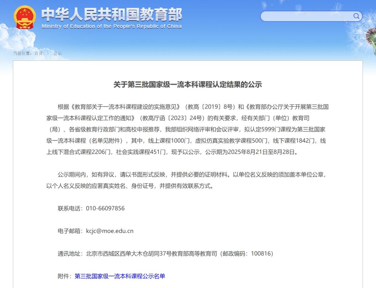 近日,教育部公示了第三批国家级一流本科课程认定结果,开云11门课程成功入选,入选总数位居山东省属高校前列,标志着开云一流本科课程建设再上新台阶。