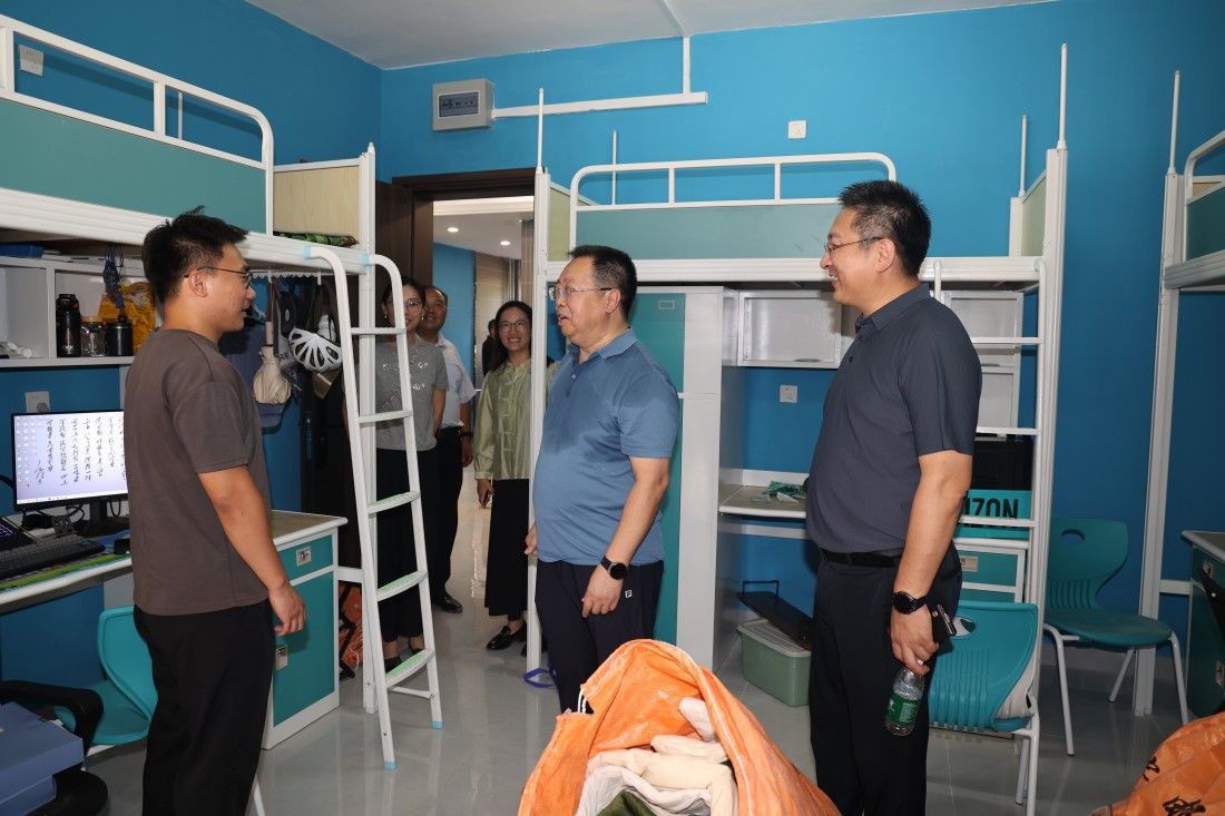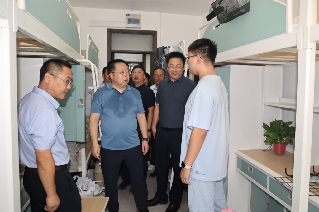 为扎实做好秋季学期开学和迎新各项准备,确保学校开学平稳安全有序,9月6日下午,党委副书记、校长刘宗明,党委副书记张庆国到教学楼、实验室、食堂、暑期改造及新建公寓、校园超市等场所检查秋季学期开学迎新准备及安全工作。