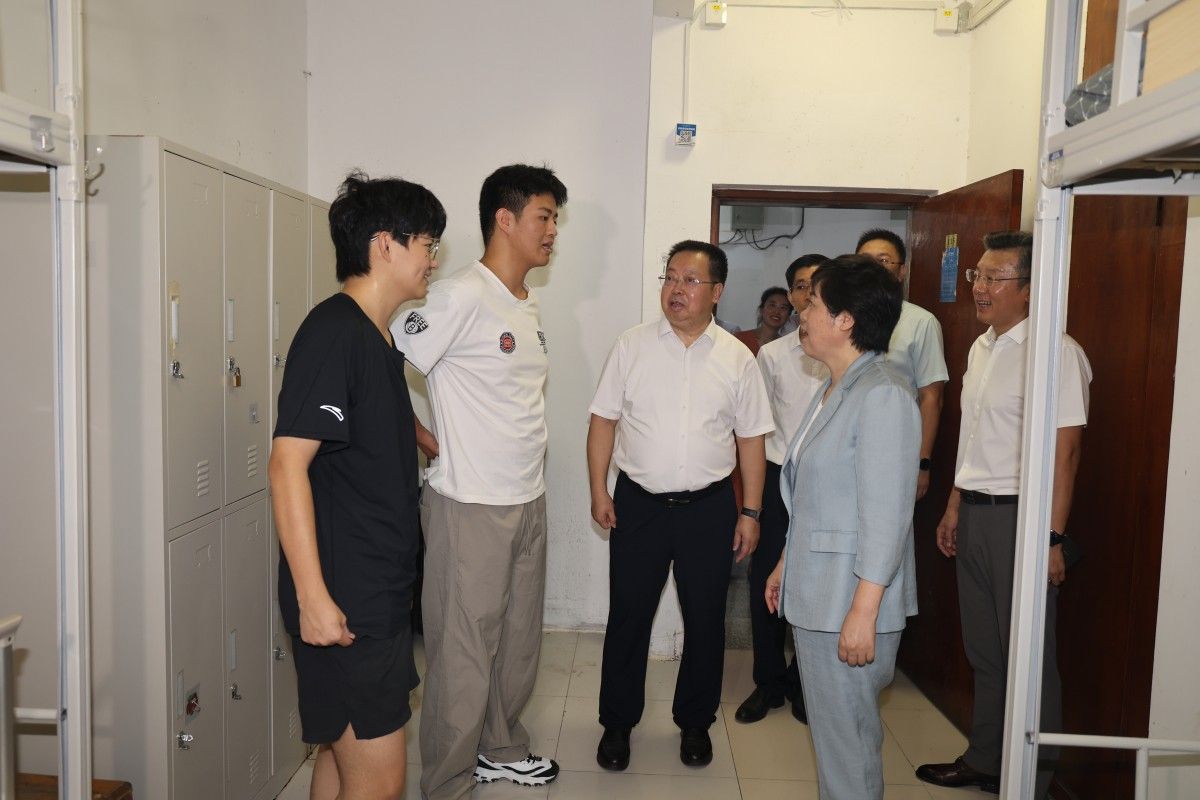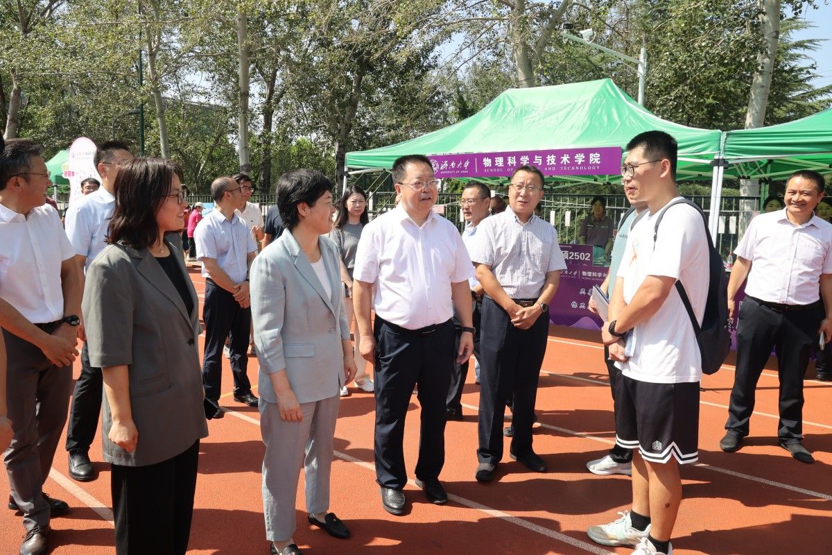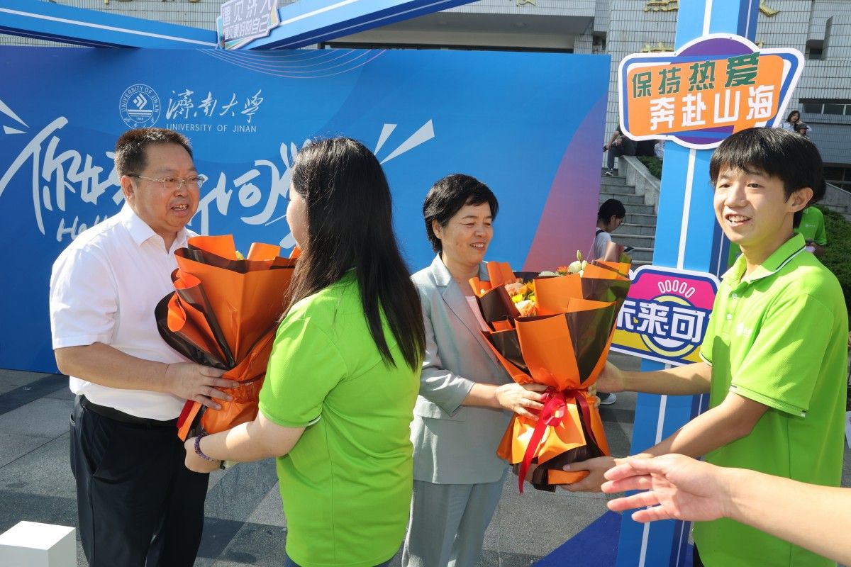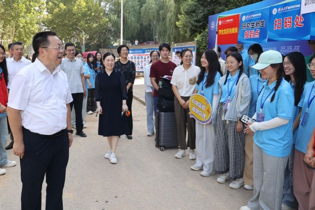 迎新当天,学校党委书记刘春华,党委副书记、校长刘宗明,党委常委、副校长李强,党委常委、宣传部部长卢旺一行来到主校区和舜耕校区迎新现场,看望前来报到的新生和家长,慰问奋战在迎新一线的工作人员并实地察看了学生公寓等基础设施。学校办公室、党委宣传部、党委学生工作部、安全管理处、教务处、党委研究生工作部、后勤管理处、信息管理处等部门负责人,也一同来到迎新现场,欢迎2025级新同学的到来。