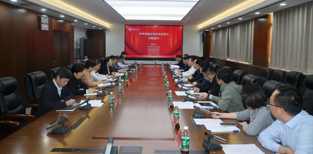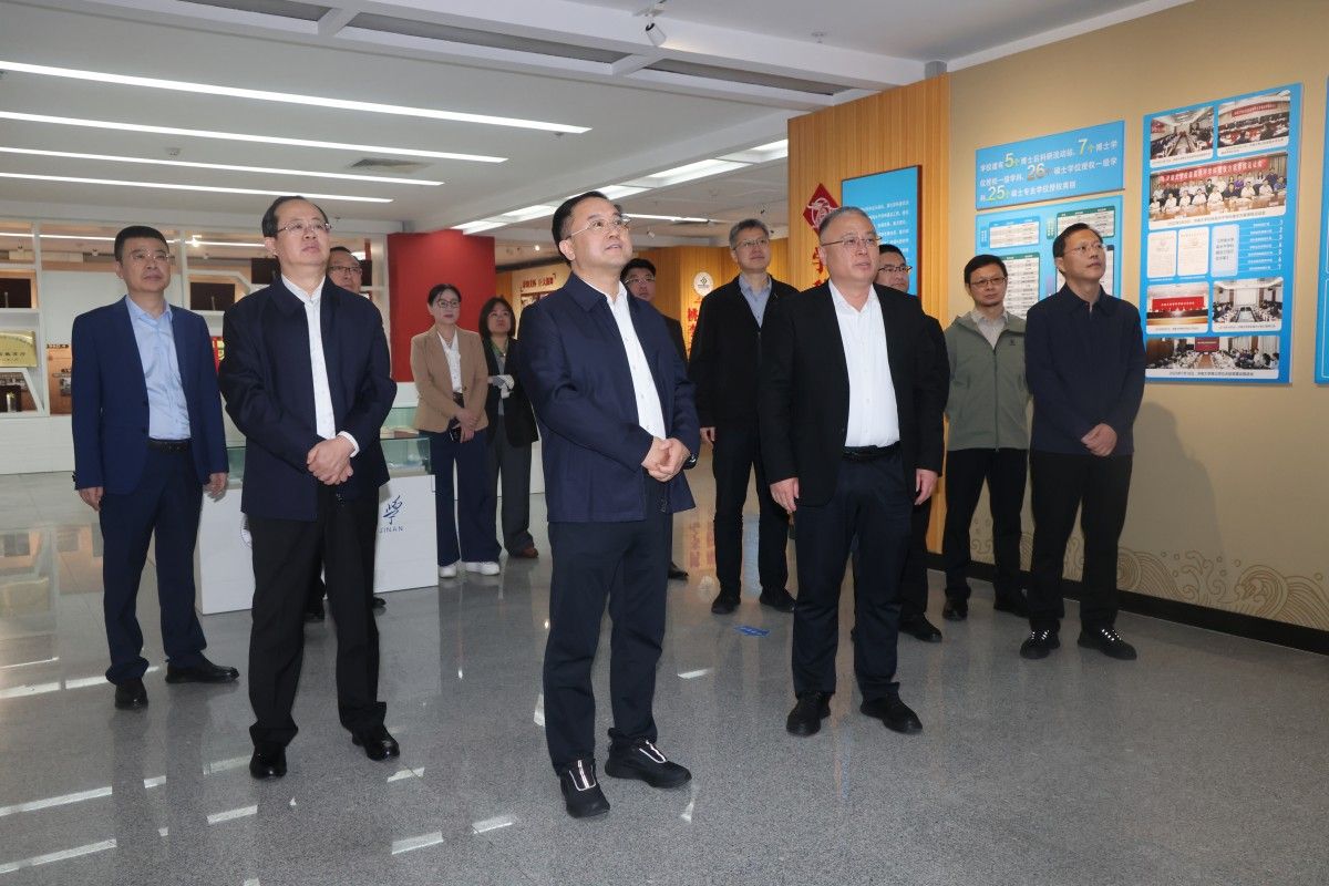 黄加栋陪同张东光一行参观学校办学成就展,其间介绍了学校办学历史、学科布局及科技成果转化工作亮点,围绕校地科技合作的核心方向、学科优势与产业需求的契合点、成果转化的实践路径等内容进行充分交流。