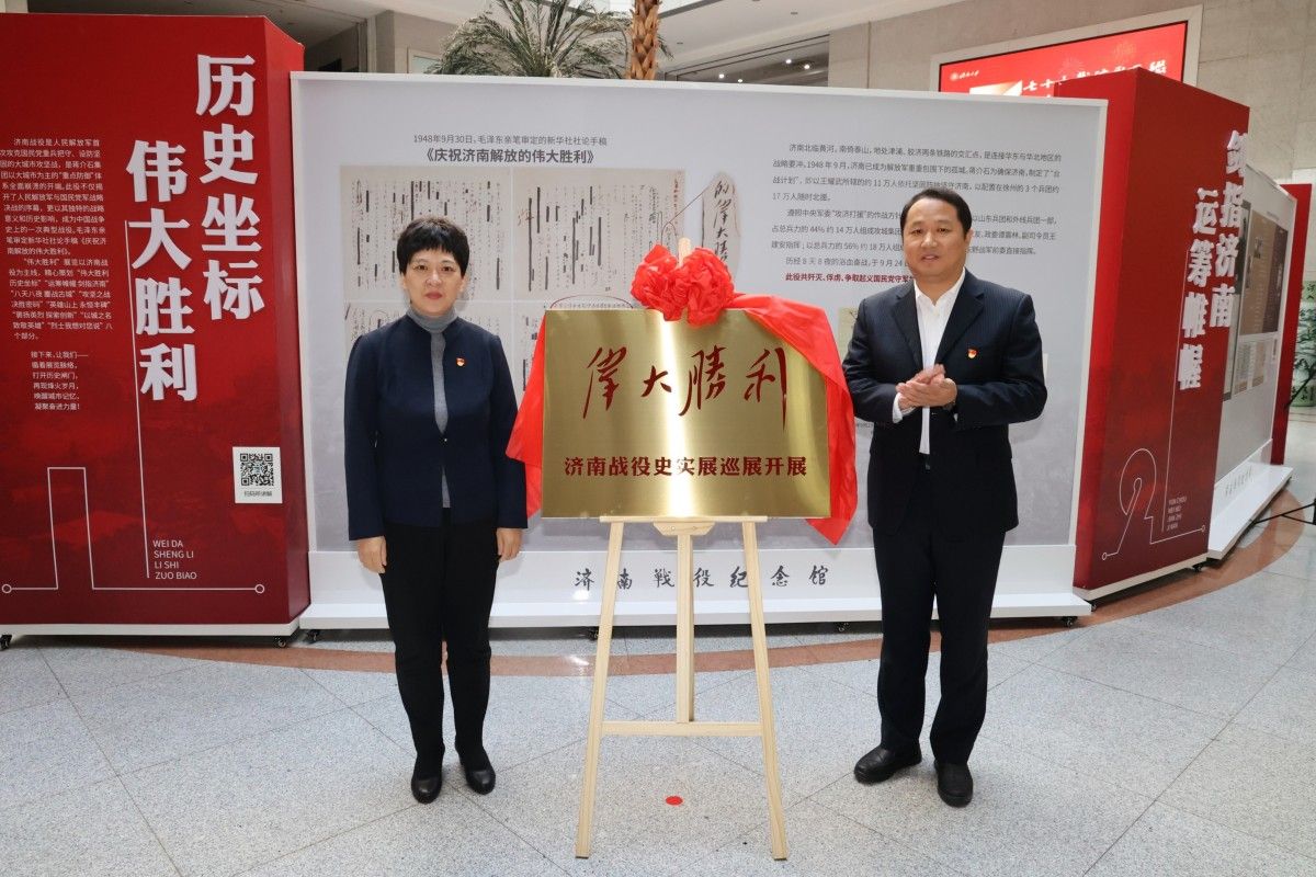 “伟大胜利”济南战役史实展巡展以济南战役为主线,分为“伟大胜利 历史坐标”“八天八夜 鏖战古城”“褒扬英烈 探索创新”等八个部分,再现济南战役的烽火岁月,彰显英雄城市的红色记忆,激发爱党爱国爱社会主义的深厚情感。