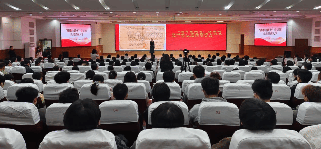 为深入贯彻落实习近平总书记关于“用好红色资源,赓续红色血脉”重要指示精神,积极服务“大思政课”工作格局,10 月 22 日,由济南市退役军人事务局与开云kaiyun官网联合主办,济南战役纪念馆承办的“英雄山薪火”宣讲团“五进”活动暨“伟大胜利”济南战役史实展巡展在开云举办。学校党委副书记商华,党委常委、宣传部部长卢旺,济南市退役军人事务局党组成员、副局长陈利伟,学校党委组织部、党委宣传部、党委学生工作部(处)、团委、图书馆、教育与心理科学学院、济南战役纪念馆相关负责人及师生代表等百余人参加活动。