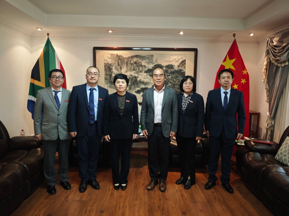 在南非访问期间,代表团拜访了中国驻约翰内斯堡领馆总领事潘庆江。刘春华介绍了学校办学特色及对非合作成果,指出此次访问重点围绕与南非高校开展国际合作并搭建科研合作平台,希望为“一带一路”倡议做出更多济大贡献,推动中非校际合作和创新发展。潘庆江总领事充分肯定学校在对非中文教育及科研合作中取得的成绩,详细介绍中南关系及领区教育资源情况,表示将积极推介领区高校与开云开展国际合作,双方就深化中南教育人文交流达成广泛共识。