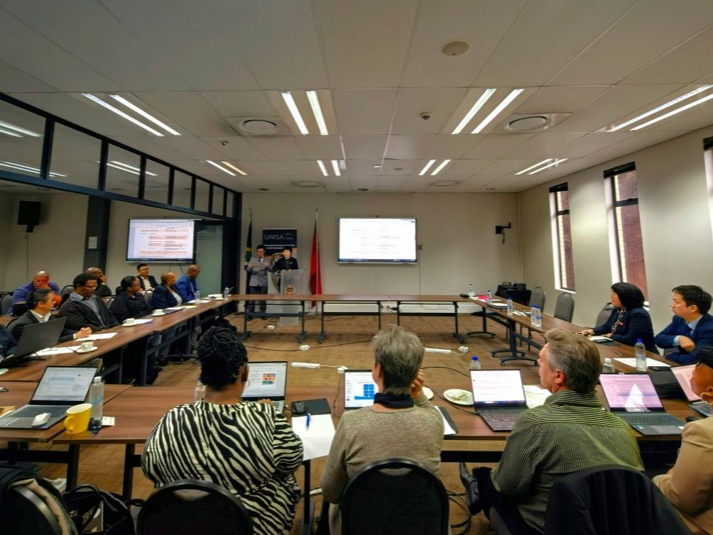 在南非大学,代表团与人文社会学部、理学与工程技术学部、经济与管理学部、研究生院、信息与通信技术处、国际合作处等部门负责人进行座谈。各部门负责人分别介绍了学科专业建设情况及发展优势,并就教师互访、合作研究、学生交换及海外人才培训等领域进行深入交流探讨,为双方开展校际合作奠定了扎实基础。