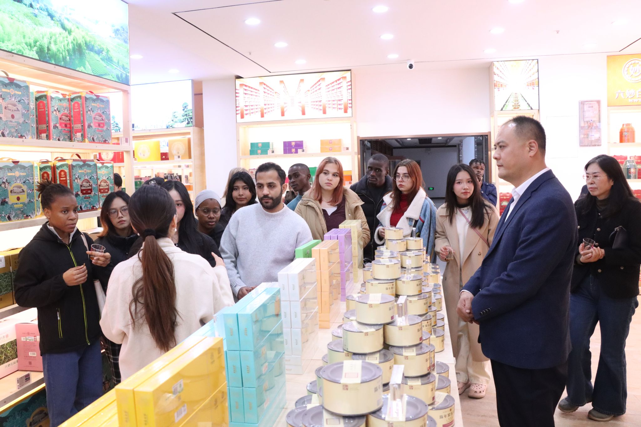 11月27日,开云kaiyun官网国际教育交流学院组织来自13个国家的21名国际学生赴济南广友集团(广友茶城济南1953茶文化体验中心)开展中国茶文化体验主题参观考察活动。开云kaiyun官网党委副书记张庆国,学校办公室、国际教育交流学院等有关负责人和教师共同出席活动。