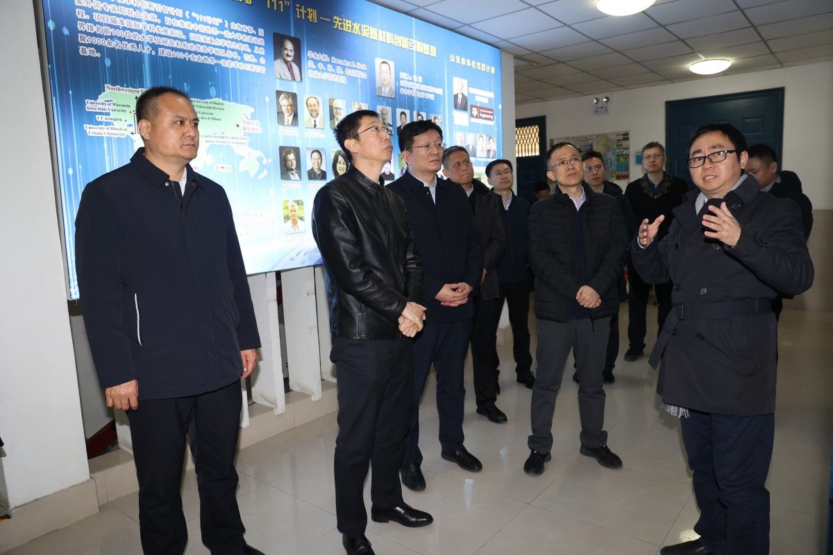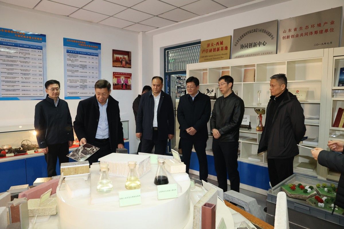 考察团在山东省绿色与智能建筑材料实验室察看实验室的科研平台建设、设备配置及研发进展情况。实验室主任黄世峰详细介绍了实验室在低碳高性能建筑材料、抗腐蚀抗渗材料等领域的研究方向与技术成果,重点阐述了针对新疆湖泊、盐碱、极寒、沙漠等特殊环境研发的适配性建筑材料相关研究。第十二师鲁疆新材料产业创新研究院院长侯鹏坤介绍了研究院的运行情况,他表示研究院正依托实验室技术成果,对接新疆企业需求推进成果转化,并对多家企业开展针对性技术指导。考察团成员认真聆听介绍,不时与科研人员交流探讨,对实验室聚焦实际需求、攻克技术难题的研发理念和显著成效给予充分肯定。