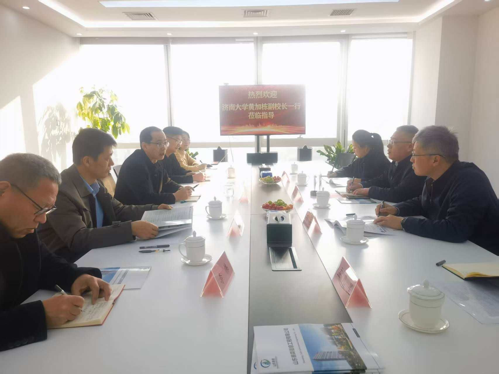 黄加栋一行先后走访了山东泰霖信息工程有限公司、山东和信智能科技有限公司、济南国鼎医药科技有限公司及银丰生物工程集团有限公司等四家校友企业,与企业相关负责人进行深入座谈交流。