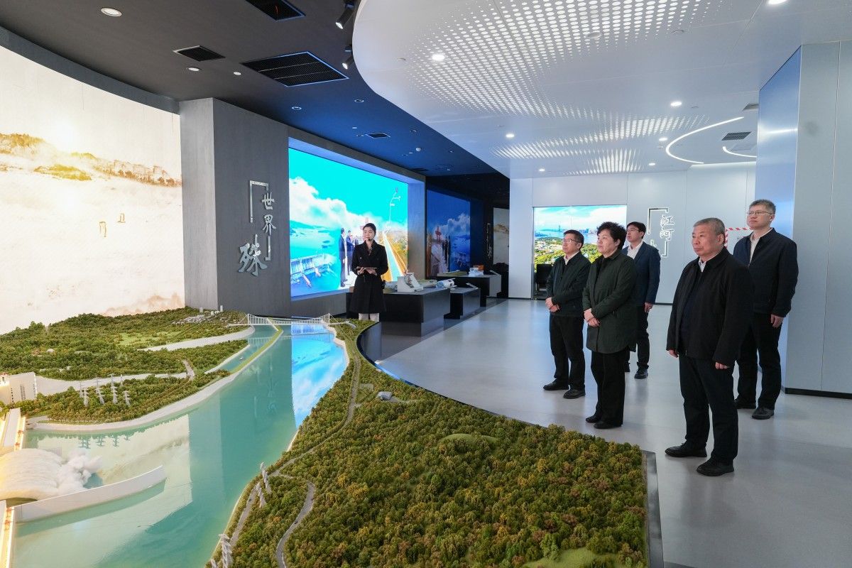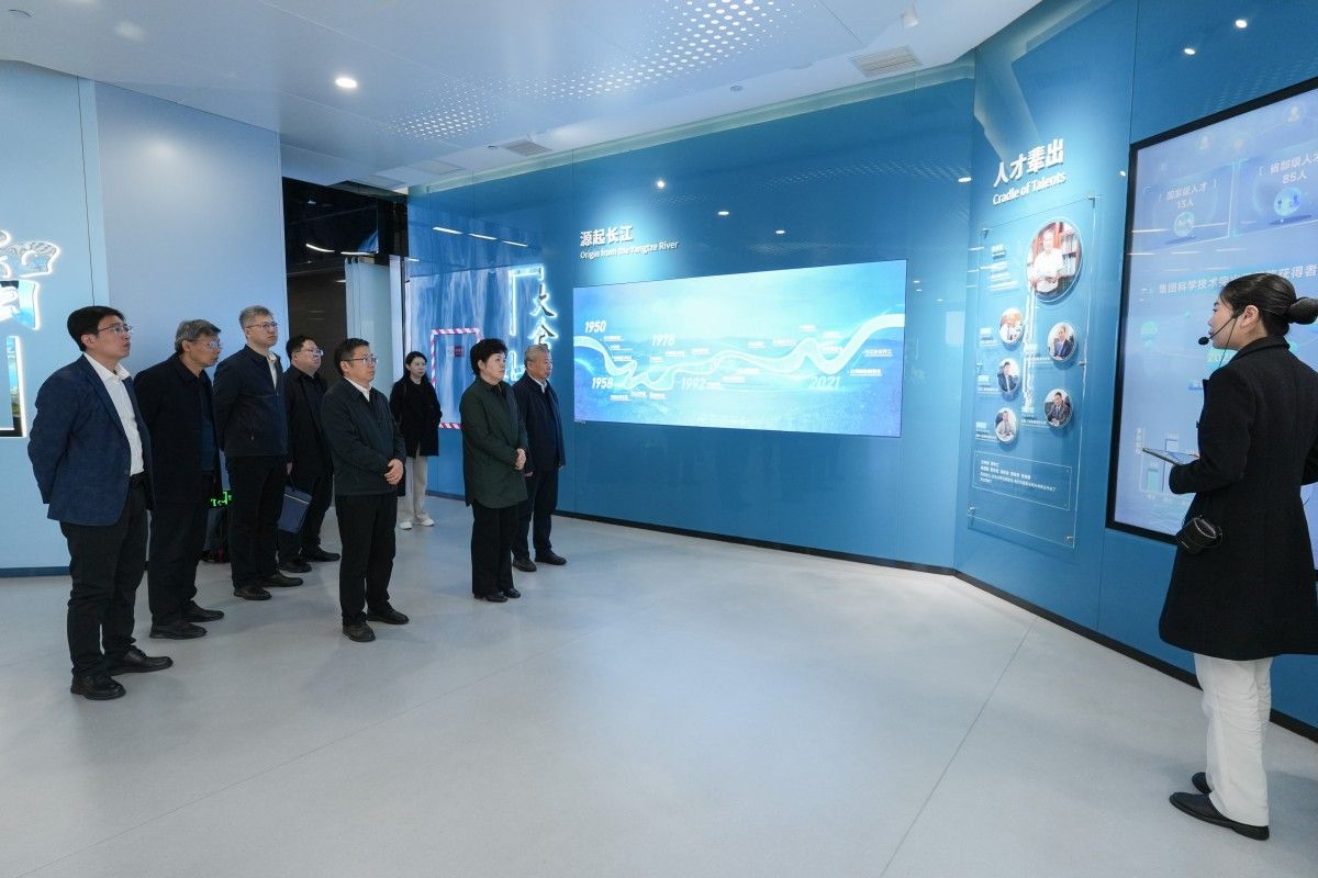 会前,刘春华一行参观了长江设计集团展厅,察看了集团在三峡工程、南水北调中线工程、乌东德水电站等国家重大工程中的技术成果与创新案例,详细了解集团在智慧水利、数字孪生等前沿领域的研发进展与应用成果。