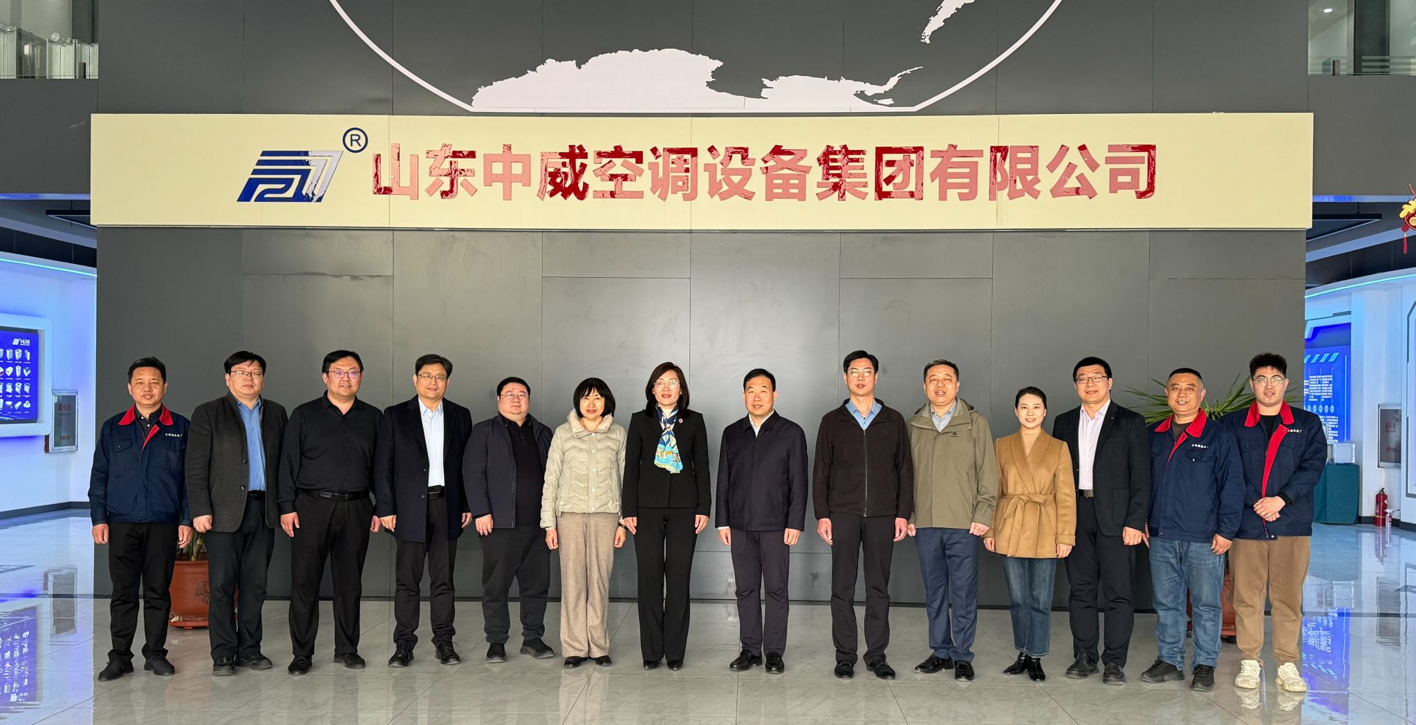 颜梅一行抵达中威空调设备集团有限公司,在武城县委常委、政法委书记魏凯章和中威空调集团有限公司董事长张传义的陪同下实地参观了企业生产车间,详细了解企业生产经营、技术研发、产业布局及人才需求等情况,与企业负责人就生产工艺、技术创新、人才培养等方面进行深入交流,为后续校企精准合作奠定基础。