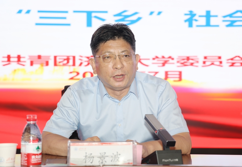 杨景波对即将奔赴全国各地开展社会实践的师生致以亲切的问候和良好的祝愿,他指出社会实践是学校人才培养的重要环节,引导学生上好与现实相结合的“大思政课”是落实立德树人根本任务的重要途径,对于促进学生全面成长成才具有重要意义。他希望广大青年师生要以“扶摇直上九万里”的锐气,书写青春之志:胸怀“国之大者”、传承奋斗担当,在思想洗礼、在实践锻造中不断增强做中国人的志气、骨气、底气,坚定跟党走的信心和决心;要以“咬定青山不放松”的干劲,勇担青春之责:怀抱梦想又脚踏实地,敢想敢为又善作善成,在躬身实践中,用心观察、用心感受、用心领悟,争做“不怕苦、不避苦、能吃苦”的创将、干将、能将;以“俯首甘为孺子牛”的姿态,共赴青春之约:想方设法为群众排忧解难、全心全意为群众服务,在想人民所想、为人民造福中升华人生理想、把准人生航向。