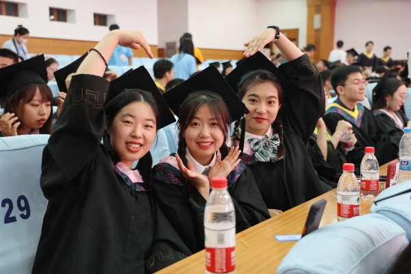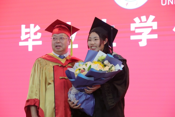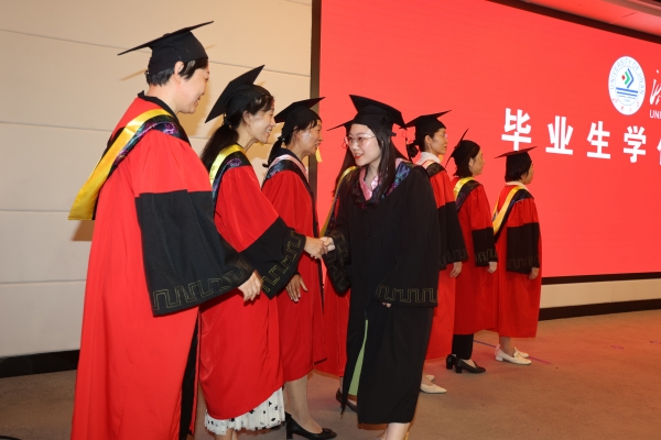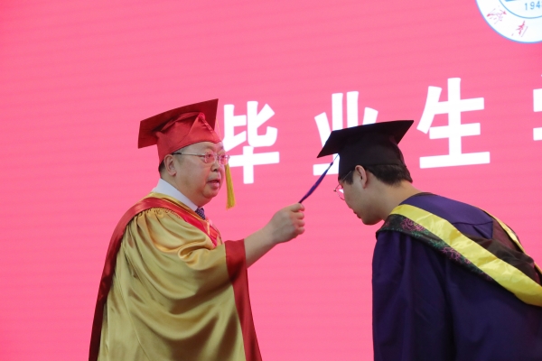 仪式上,刘宗明校长一一为校友拨穗并合影留念。学校教师代表和毕业生们一一握手,表示祝贺。每一次流苏的拨动是对青春奋斗的见证,每一个深深地鞠躬是对良师的不尽感激,每一次快门的按下是对美好记忆的永久封存。今天,这场期待许久的仪式,在这个舞台上得以如愿。