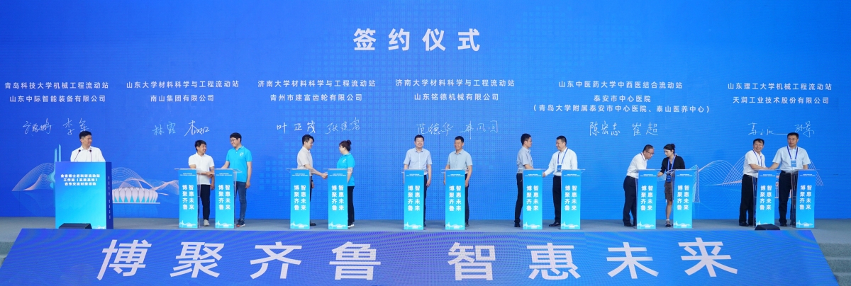 在前期充分酝酿和沟通的基础上,学校分别与单县湖西产业技术研究院、山东铭德机械有限公司、青州市建富齿轮有限公司、山东滨农科技有限公司在活动现场举行了签订仪式,双方一致同意在共建、共享、共赢的基础上,建立博士后合作与青年人才成长交流机制,推动博士后科研合作和创新成果转化落地。同时,学校还与山东艾孚特、济南圣泉集团、宝胜电缆、山东博奥克生物等53家公司就博士后平台建设与人才需求合作进行了初步洽谈交流。