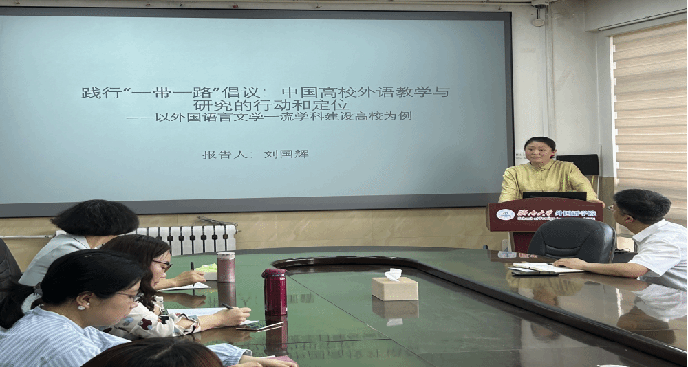 为提升外国语学院学术科研氛围,激励师生科研热情,促进学院一流学科建设,5月14日下午,外国语学院认知语言学团队于学院六楼会议室组织开展了“践行“一带一路”倡议:中国高校外语教学与研究的行动和定位——以外国语言文学一流学科建设高校为例”学术沙龙讲座。本次讲座由外国语学院副院长秦利民主持,邀请了刘国辉副教授作为主讲人,学院教师和在读研究生参加了本次讲座。