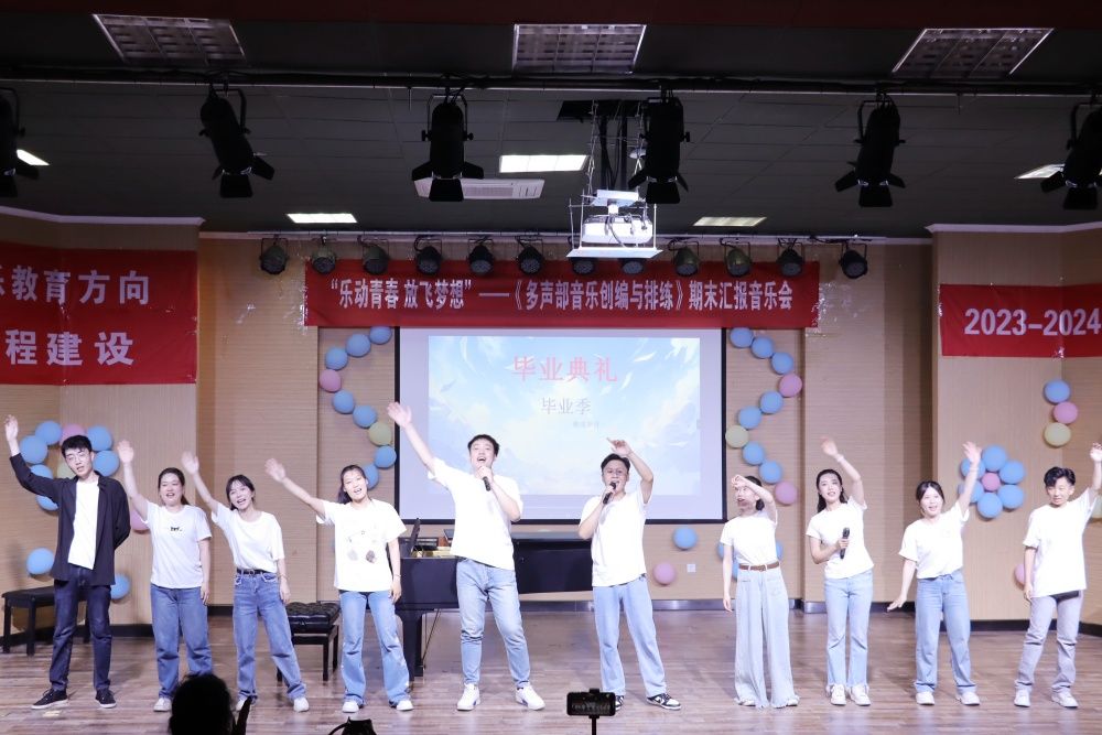 为培养具有理想信念、优良职业素养的高层次应用型音乐专门人才,提升研究生培养质量,7月1日“乐动青春·放飞梦想”音乐学院成功举办艺术硕士音乐教育方向《多声部音乐创编与排练》暨《综合即兴编创》协作类核心课程期末汇报音乐会。音乐学院副院长王建成,研究生院副院长仲倩,音乐学院副书记、副院长董晓宁,部分教师、研究生导师、全体研究生参加本次音乐会。