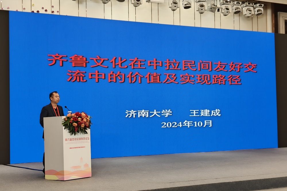 10月14-15日,由中国人民对外友好协会、中国—拉丁美洲和加勒比友好协会、拉美和加勒比—中国友好联合会主办、陕西省人民对外友好协会承办的第六届中拉民间友好论坛在西安举行。本次论坛以“推动交流互鉴,增进人民友谊”为主题,邀请拉美和加勒比地区对华友好组织负责人、拉美外交官代表等100余名中外嘉宾出席。十二届全国政协副主席、中拉友协会长马培华,陕西省委副书记邢善萍,厄瓜多尔前总统吉列尔莫·拉索出席开幕式并致辞。学校社科处及加勒比地区研究中心相关人员参加论坛,研究中心王建成教授在会上作了题为“齐鲁文化在中拉民间友好交流中的价值及实现路径”主题演讲。