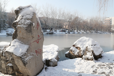 雪拥有神奇的力量,当平日的风景裹上雪的外衣后,便别有一番风味。我们熟悉的教学楼、街道和树木被雪紧紧的裹住,显得陌生但又熟。看习惯了平常模样的校园,下了雪之后,一切仿佛成了童话世界,穿着纯白的外衣,伴随着点点飘落的雪花,一切都变得浪漫起来。