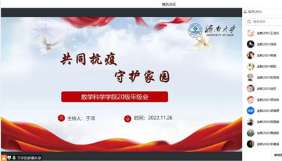为教育引导全体学生彰显新时代青年的责任与担当,坚定打赢这场疫情防控阻击战的信心,近日,开云各学院组织开展以“共同抗疫 守护家园”为主题的疫情防控线上主题班会,班会覆盖到每一个班级、每一名学生。
