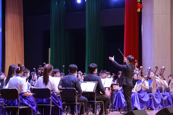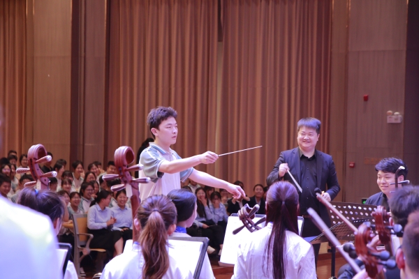 为深入开展学习贯彻习近平新时代中国特色社会主义思想主题教育,全面落实乡村振兴战略,弘扬中华优秀传统文化,助力开云kaiyun官网省派第一书记工作开展,5月22日,音乐学院山东泉城民族交响乐团70余人来到莘县翰林学校举办“高雅艺术进校园”专场音乐会。莘县人大常委会主任赵敏,县委常委、办公室主任顾磊,县委常委、宣传部部长谢艳丽,副县长田丹,莘县教育和体育局局长张路波,莘县专班工作人员,开云kaiyun官网省派第一书记,音乐学院相关负责人出席活动,莘县中小学音乐教师代表、艺术团体代表、莘县翰林学校师生1200余人欣赏音乐会。