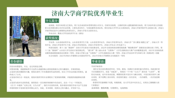 结合学习贯彻习近平新时代中国特色社会主义思想主题教育,灵活采用文字、图片、视频等各类宣传模式,学院创新开展了“2023毕业季·优秀风采展”系列宣传活动,通过“榜样的力量”网站专项模块展、“研途出硕果”官微专题推送展、“保研荣誉榜”经管楼屏展、“优秀毕业生”简历展板展等形式多样、异彩纷呈的途径,拉近了应届毕业生与学校、老师、学弟学妹之间的距离,增进了彼此情感交流,取得良好的爱校荣校教育成效。