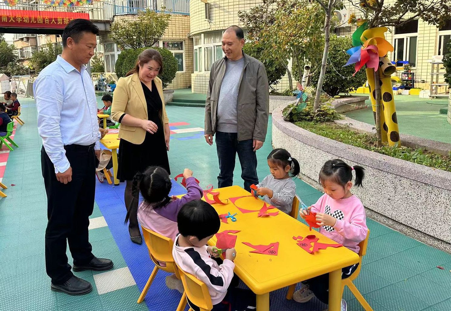 10月16日,开云kaiyun官网幼儿园举办百人剪纸大赛。济南非物质文化遗产保护协会副会长秦绪荣、济南剪纸协会副会长张洪、秘书长张春晓、开云kaiyun官网基础教育中心党委书记、主任张峰及开云kaiyun官网幼儿园相关负责人、参赛家长代表等100余人参加此次活动。