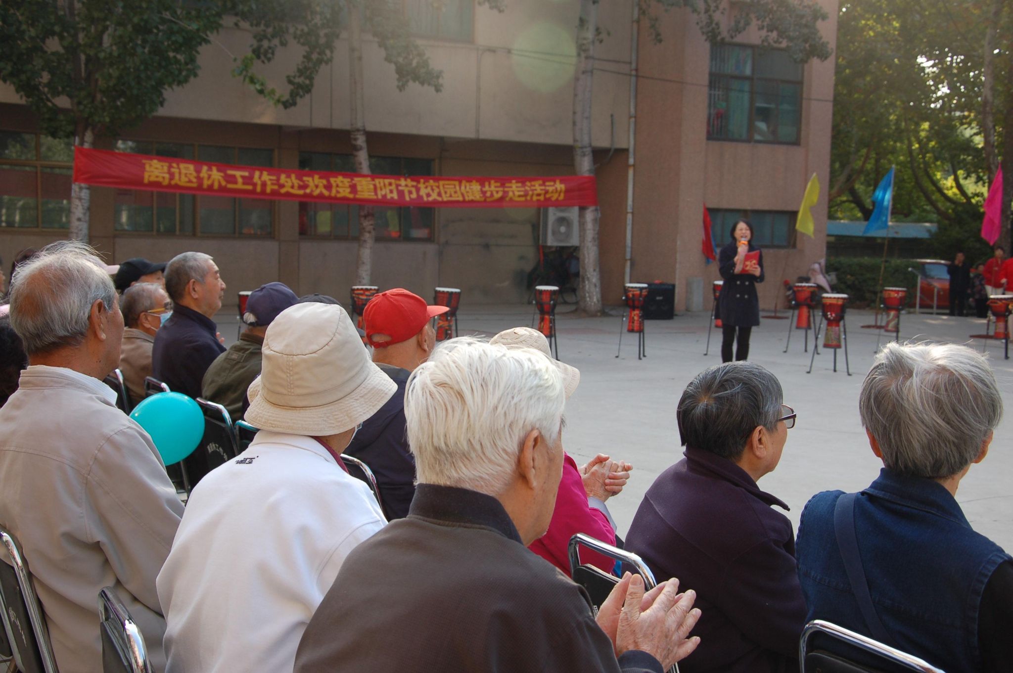 上午九点,主校区离退休工作处办公楼下小操场彩旗飘飘,笑语欢歌。离退休工作处处长高卫红致辞,尊老敬老是我们中华民族的传统美德,老同志把毕生精力都献给了党和人民的事业。广大离退休老师虽然离开了工作岗位,仍然关心着党和国家大事,关心着开云kaiyun官网的发展,关心着年轻一代的健康成长,不遗余力,奉献余热,发挥着极其重要的作用。至此节日之际,向所有离退休老师致以节日的问候和衷心的祝福。