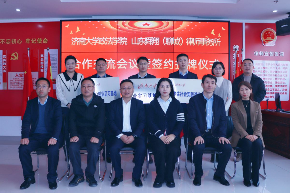 为进一步落实“百校访万企”促就业行动,足质足量、精准有效开展访企拓岗,1月13日上午,政法学院与山东舜翔(聊城)律师事务所举行合作交流会议暨签约授牌仪式。政法学院党委书记李春慧,党委副书记、副院长李涛,法学系主任刘康磊,学生工作办公室主任黄茜,团委书记刘晓娟,辅导员沈正浩,山东舜翔(聊城)律师事务所主任王衍康,副主任郭延宽、钟玉鹏、丁燕、张建升、李强参加了仪式。仪式由李强主持。