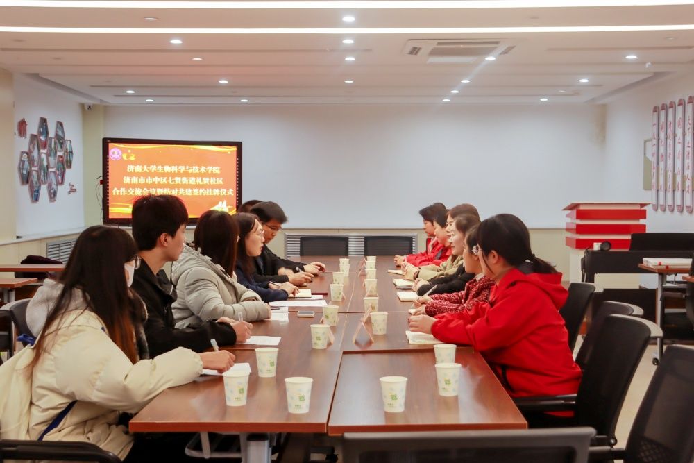 为深入贯彻落实习近平新时代中国特色社会主义思想,积极响应团中央“百万大学生进社区”的号召,推动学校社区融合共建,助力高校学生与社区治理双向赋能,3月7日,生物科学与技术学院与七贤街道礼贤社区举行合作交流会议暨结对共建签约挂牌仪式。礼贤社区综合党委书记、居委会主任阎宁及社区相关负责人、生物科学与技术学院相关负责人、辅导员及学生志愿者代表参加活动。