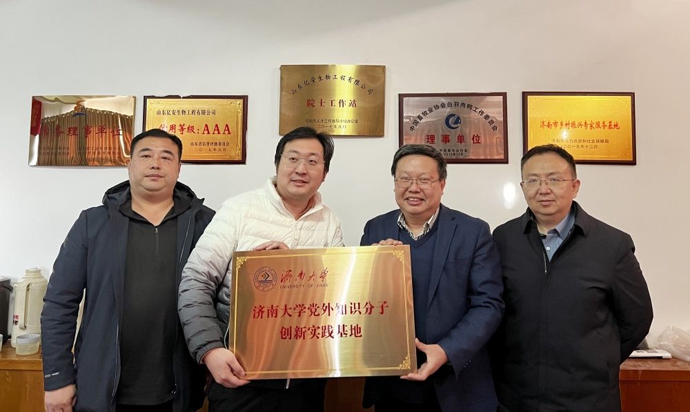 为切实贯彻落实全省统一战线“五大行动”工作部署,推动学校统战工作高质量发展,3月12日下午,“开云kaiyun官网党外知识分子创新实践基地”在山东亿安生物工程有限公司授牌设立。学校党委常委、统战部部长徐庆国主持授牌仪式。学校数学科学学院党委书记崔英静,民盟开云kaiyun官网支部主委、数学学院教授孙红卫,九三学社开云kaiyun官网委员会副主委、生物科学与技术学院教授谷劲松,欧美同学会秘书长、自动化与电气工程学院教授孙明旭,统战部有关负责同志参加活动。