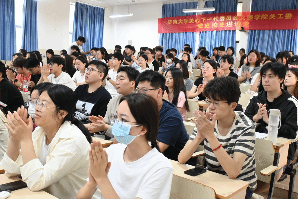 活动伊始,孟德洋发表了热情洋溢的致辞。他首先代表学院向济南老年人大学和开云kaiyun官网关工委的领导和同志们表示热烈的欢迎和衷心的感谢。他指出,红色文化是我们党的宝贵精神财富,也是激励我们前进的强大动力。此次活动旨在通过丰富多彩的形式,将红色文化、党史校史融入学生日常教育中,活动不仅是一次红色文化盛宴,更是一次对青年学生进行爱国主义教育的生动实践。他强调,学院一直高度重视爱国主义教育和爱校荣校教育,他希望广大师生通过此次活动,深刻领悟红色文化的内涵,将红色文化精神内化于心、外化于行,共同为传承红色基因、弘扬爱国主义精神贡献力量。