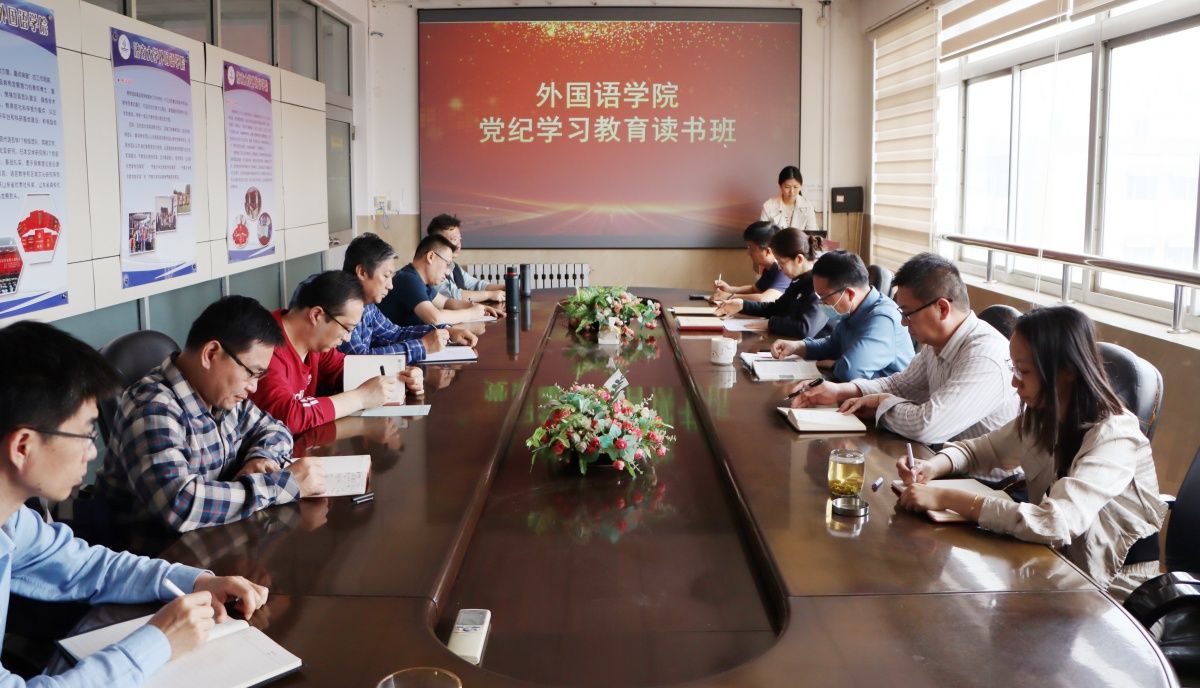 为深入学习贯彻习近平总书记关于党纪学习教育的重要讲话和重要指示精神,根据学校统一部署要求,4月29日下午,外国语学院在一教六楼会议室组织开展了党纪学习教育读书班,学院班子成员、组织员、党支部书记、科级干部和全体辅导员参加学习。