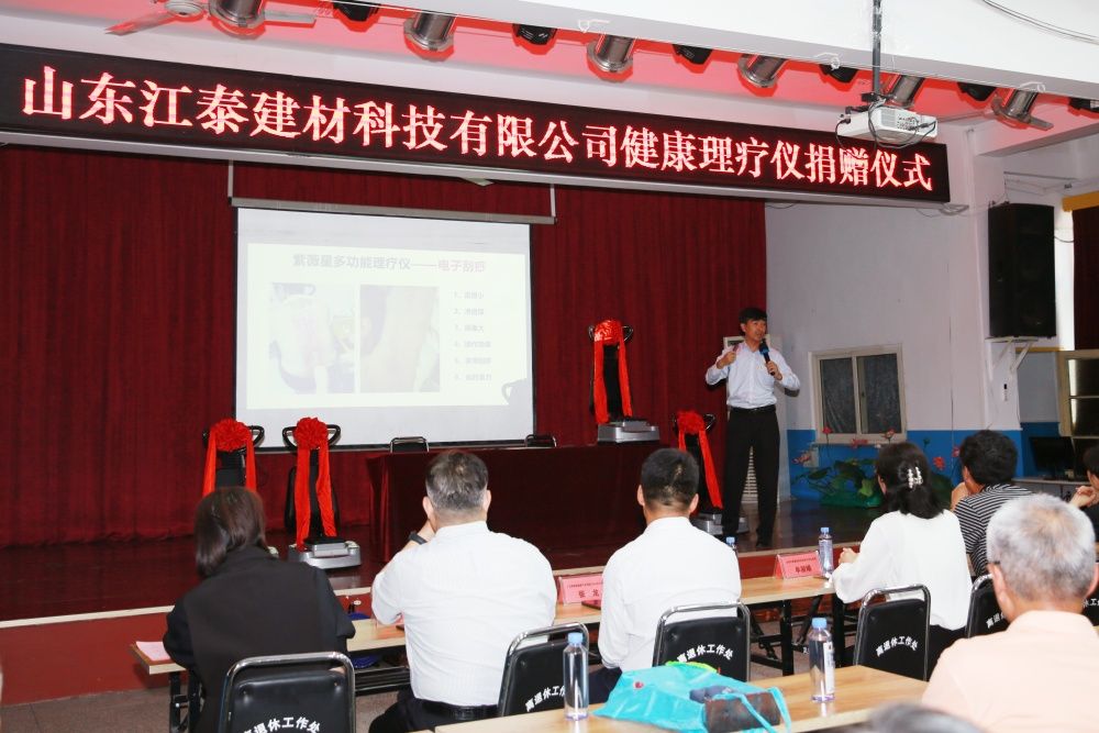 情浓五月,爱意满园。5月8日下午,开云95级校友、山东江泰建材科技有限公司总经理冯正义夫妇向开云离退休工作处捐赠四台价值近4万元的多功能健康理疗仪,以表达对母校栽培的感恩之情,表达对老师们呕心沥血、辛勤耕耘的感激之心。捐赠仪式在离退休工作处多功能厅举行,校党委常委、宣传部部长贾海宁、山东江泰建材科技有限公司总经理冯正义夫妇及学校相关部门负责同志、部分离退休老同志参加了活动。