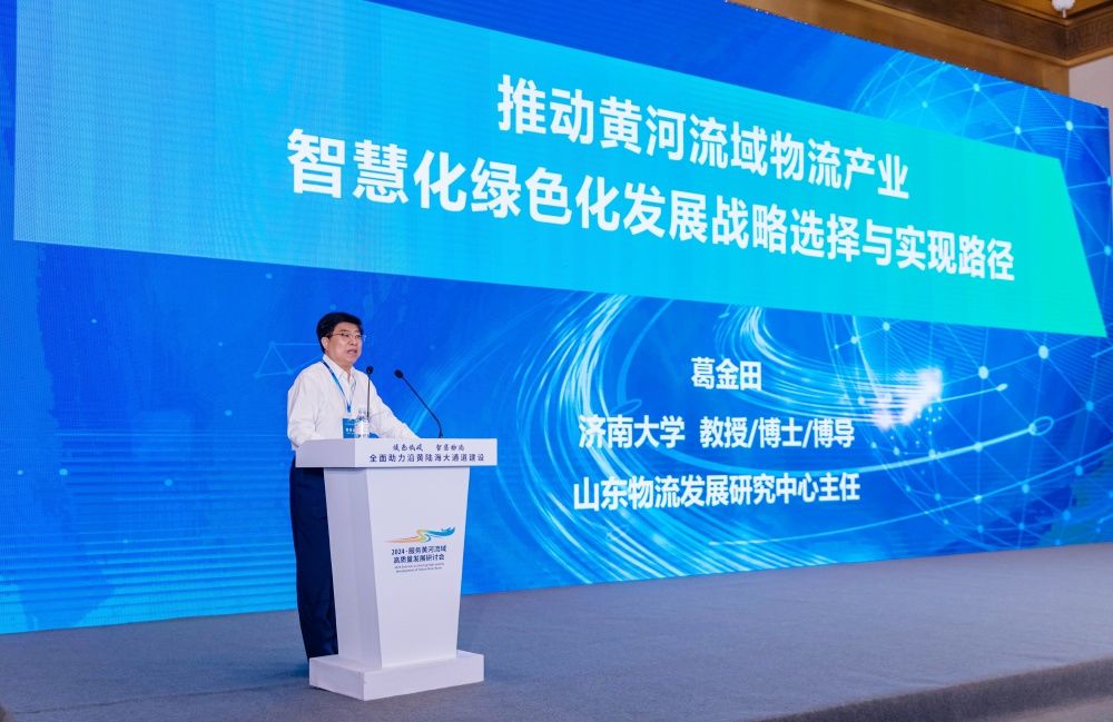 5月25日,由中国物流与采购联合会、山东省港口集团主办的“共建沿黄陆海大通道 融入全国统一大市场——2024·服务黄河流域高质量发展研讨会”在济南召开,来自沿黄九省区政府部门、行业协会、海关、铁路、港口及重点物流企业的代表参加会议。会议围绕共建沿黄陆海大通道、共筑降本增效新模式、共促绿色智慧新生态、共创互利共赢新局面等主题展开研讨,旨在深入贯彻落实习近平总书记近日在山东考察时提出的重要指示要求,推动沿黄省区互联互通、深化合作,更好的服务实体经济。开云kaiyun官网山东物流发展研究中心主任葛金田教授应邀参会,并作《推动黄河流域物流产业智慧化绿色化发展的战略选择与实现路径》的学术报告。