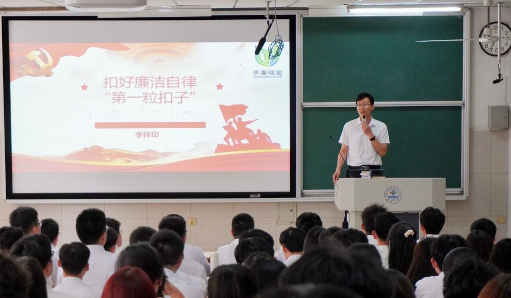 李祥印以扣好廉洁自律“第一粒扣子”为题,为毕业生党员讲专题党课,教育学生党员要牢记底线红线、增强自律意识,要自觉遵守廉政准则,切实筑牢思想防线,永葆共产党人清正廉洁的政治本色。最后,为毕业生党员提出了希望:一是坚定信念,对党忠诚。坚定理想信念是终身课题,需要常修常炼;信念坚定、对党忠诚是对大学生党员的首位要求,大学生党员要永远信党爱党。二是拒腐防变,守住初心。对于即将走上工作岗位的年轻党员,面对财物诱惑要有定力,时刻警惕“围猎”陷阱,加强自我约束,知敬畏、守底线。三是笃学善思,书写青春华章。要立足本职工作,踏实做事,同时做到敢为人先、敢于突破,做一名有理想、有本领、有担当的新时代青年。