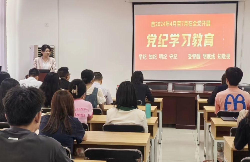 为深入贯彻落实习近平总书记关于党纪学习教育的重要讲话和重要指示精神,教育引导师生涵养自律品格,营造风清气正的校园环境,6月6日,生物科学与技术学院邀请学校纪委副书记孙菲菲以《守纪律,讲规矩,做维护党的纪律的忠诚卫士》为题,讲授“青廉课堂”专题党课。学院党委班子成员、各党支部书记、师生党员代表、毕业生党员参与活动。活动由学院党委副书记、副院长武芳主持。