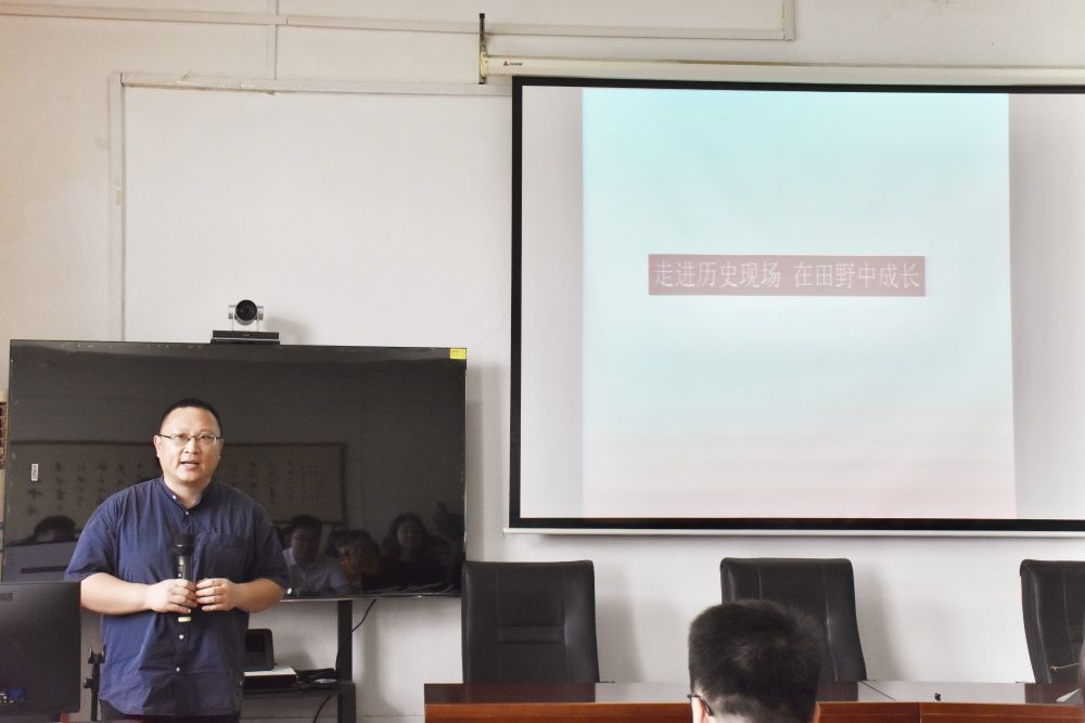 校级重点团队“探寻乡村振兴路上‘三山精神’,济南长清灵岩村社会实践团”指导教师白洪谭发言,分享了自己曾经的实践经验,他强调了团队合作的重要性,“在社会实践中,没有孤军奋战的英雄,只有团结协作的团队。同学们要珍惜彼此之间的合作机会,相互学习,共同进步。只有这样,我们才能克服一切困难,取得最终的胜利。”