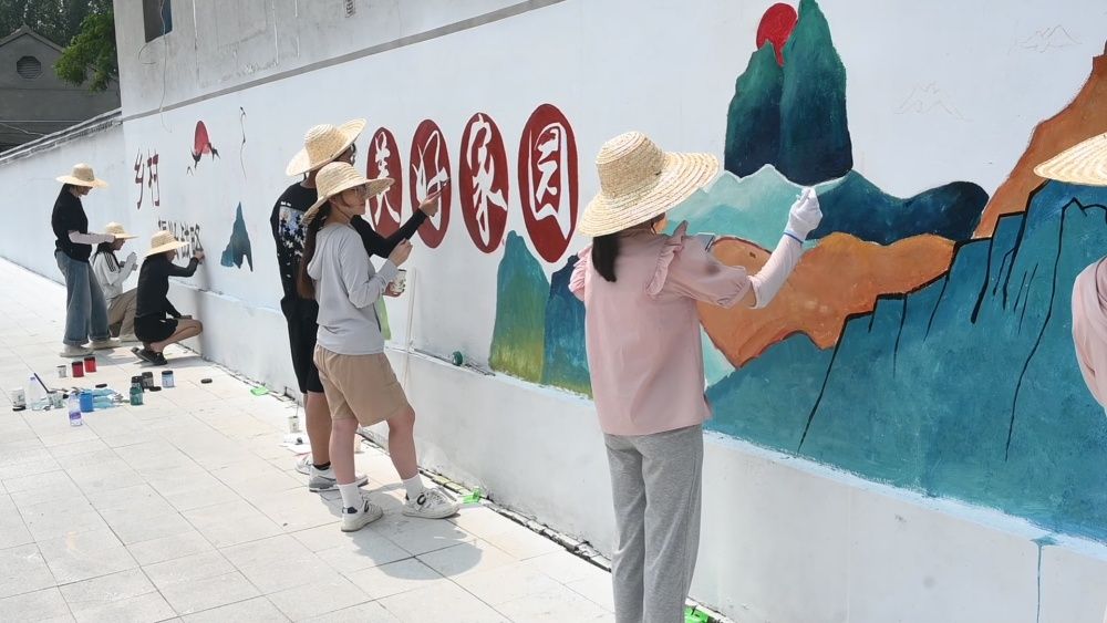 参与活动的大学生涵盖美术学、环境设计、视觉传达设计、服装与服饰设计等多个专业。创作过程中,团队成员合理分工,克服酷暑天气,从墙面清理、画稿起型、颜色填充,到人物勾勒、细节刻画,所有环节都一丝不苟认真完成。