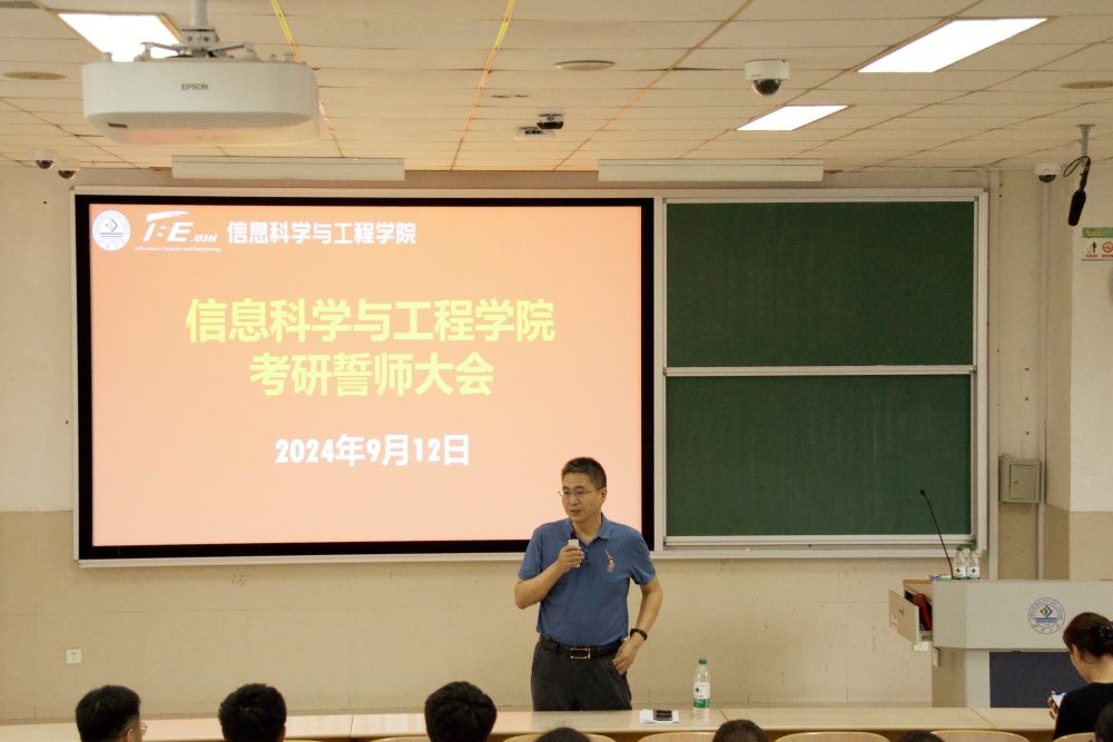 为充分调动2025届学生的考研积极性,帮助学生了解当下考研形势,明确考研目标,增强考研信心,助力他们在最后的百日冲刺中勇攀高峰,9月12日下午,信息科学与工程学院在11j6202举行了2025届考研誓师大会。学院党委书记夏卫东、副院长杨晓晖及2025届考研学生代表出席会议。会议由21级辅导员丁铮主持。