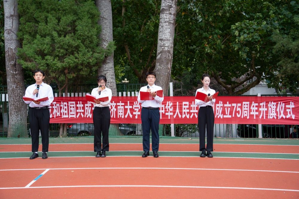 升国旗,赓续红色血脉。早七时整,学院团委书记薛浩、各年级辅导员老师与新生同学们在操场参加隆重的升国旗仪式。国旗护卫队迈着铿锵的步伐,护卫着五星红旗走向升旗台。随着激昂的《义勇军进行曲》奏响,五星红旗在微风中冉冉升起,迎风飘扬。最后,师生共同歌唱《我和我的祖国》。