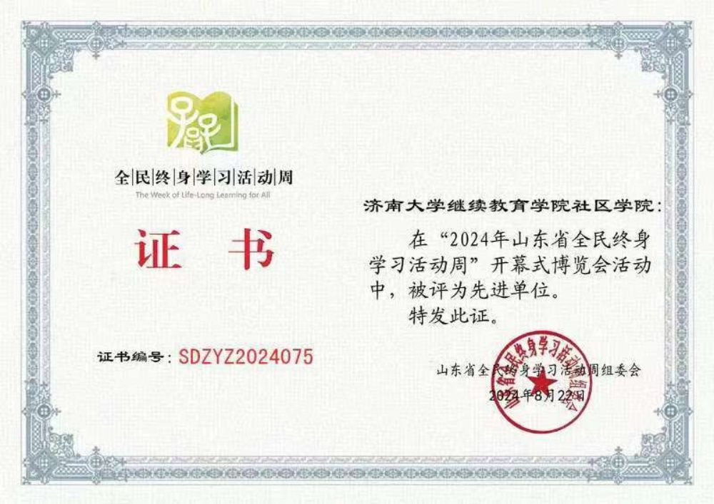 近日,继续教育学院 社区学院被山东省全民终身活动周组委会评为先进单位。8月20日至21日,由山东省教育厅、山东省委宣传部、山东省民政厅、山东省文化和旅游厅、山东省总工会等5部门主办,泰安市人民政府、山东成人教育协会承办的2024年全民终身学习活动周启动仪式在泰安市国际会展中心隆重举行。省领导、教育部有关业务部门领导、5部门有关领导出席本次活动。继续教育学院、社区学院应邀代表学校组队参加。活动期间,继续教育学院 社区学院参加了全民终身教育活动周博览会,并向与会代表们展示了学校近5年来开展全民终身学习活动的丰硕成果。继续教育学院 社区学院客座教授张淼老师还现场演示了花式蒸饺制作,吸引了众多与会代表们驻足观看、交流、品尝,并得到了大家的一致好评。