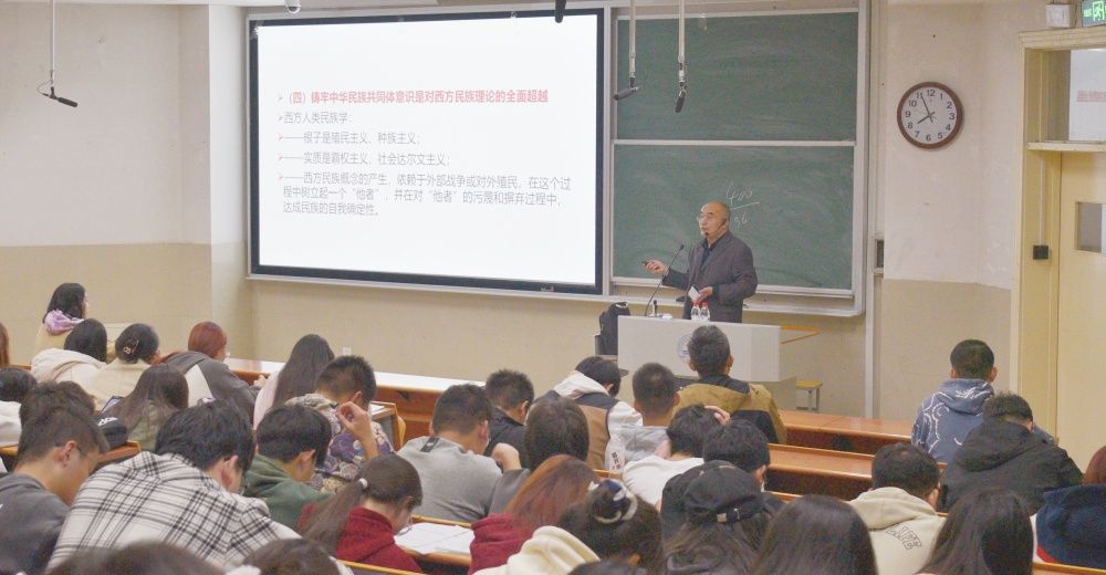 在宣讲中,梁栋指出我们青年学子要站在新的历史方位,铸牢中华民族共同体意识,争做民族团结忠实践行者。他从“铸牢中华民族共同体意识的理论内涵”“铸牢中华民族共同体意识的价值意蕴”“铸牢中华民族共同体意识的形势任务”“铸牢中华民族共同体意识的焦点应对”等四个方面结合学校重点工作,提纲挈领引导参会同学牢固树立正确的中华民族历史观,增进“五个认同”,树立“四个共同”,根植“四个与共”,把握“四对关系”。引导大家自觉做铸牢中华民族共同体意识的坚定拥护者、宣传者、践行者,为实现中华民族伟大复兴、建设中华民族现代文明贡献力量。