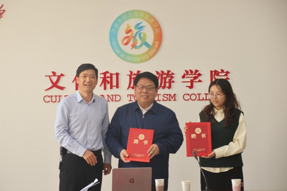 孟德洋首先对马骏、马淑雯两位老师的到来表示欢迎。他强调文化和旅游学院的学子们必须要担负起新时代文化使命,繁荣和发展文化事业和文化产业,让社会主义先进文化为经济发展增动能增效益、为旅游休闲增内涵增魅力、为学院建设增动力增活力。随后,孟德洋为两位老师颁发了校外辅导员聘书。
