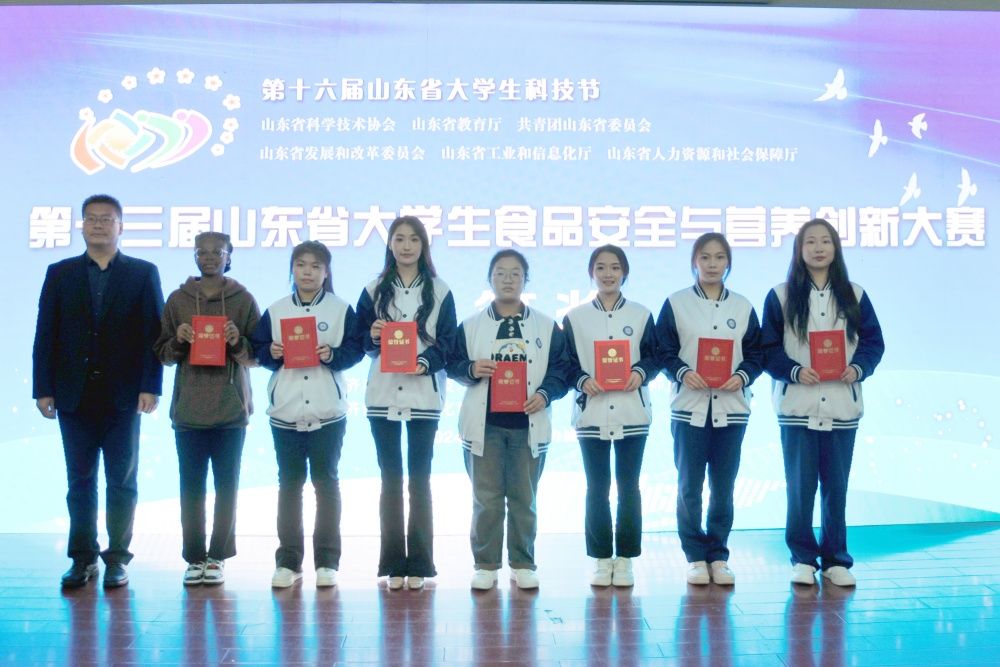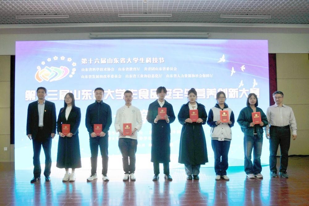 10月28日,由山东省科学技术协会、山东省教育厅、共青团山东省委、山东省发展和改革委员会、山东省工信和信息化厅、山东省人力资源和社会保障厅主办,济南市科学技术协会、济南公共营养师协会、开云kaiyun官网文化和旅游学院承办的第十三届山东省大学生食品安全与营养创新大赛颁奖典礼在开云kaiyun官网文化和旅游学院举行。济南市科学技术协会学会服务中心主任陆建华、文化和旅游学院党委书记孟德洋、文化和旅游学院食品科学与营养系主任汤卫东、济南公共营养师协会副会长李传涛、济南公共营养师协会副会长陈先云出席颁奖典礼,各高校参赛师生代表参加活动。颁奖典礼由学院党委副书记、副院长信苏珊主持。