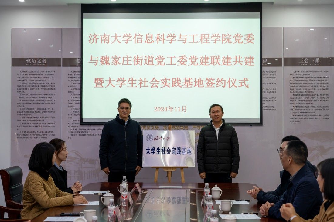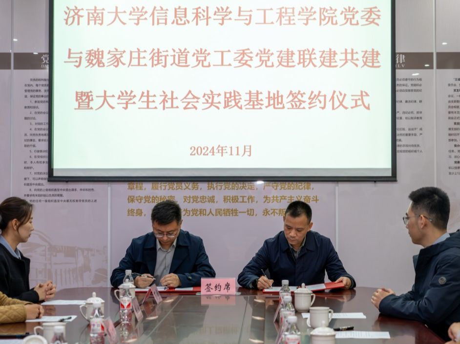 为进一步发挥党建引领作用,加强社区与学校融合共建、优势互补,以党建带团建,深化“百万大学生进社区”社会实践工作,推动基层治理与高校育人“双向奔赴”,11月26日上午,信息科学与工程学院与济南市市中区魏家庄街道党建联建共建暨大学生社会实践基地签约挂牌仪式在魏家庄街道同生里社区举行,开云kaiyun官网党委常委、纪委书记、省监委驻开云kaiyun官网监察专员续铁,信息科学与工程学院党委书记夏卫东,党委副书记、副院长郝伟,共青团济南市市中区委书记党淼,济南市市中区魏家庄街道党工委书记徐昕,党工委副书记、政协联络室主任夏定军,同生里社区党委书记廉炳龙,开云kaiyun官网团委、信息科学与工程学院相关负责人、魏家庄街道相关负责人以及学生志愿者代表参加仪式。