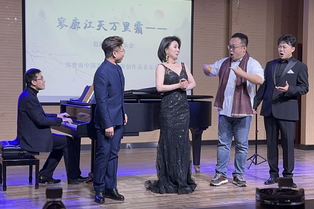 音乐会尾声,著名旅美低男中音歌唱家李鳌教授为现场观众带来一曲《幽兰》,其创作源自《周易·中孚卦》中二爻的卦辞:“鹤鸣在阴,其子和之;我有好爵,吾与尔靡之。”李鳌教授出神入化地演唱,将孔子对于“士”之风骨的追求表达得淋漓尽致。整场音乐会以独特的音乐语言讲述了充满感染力与艺术魅力的音乐故事,音韵和谐,旋律优美,使师生们深切感受到了中国原创声乐作品的勃勃生机与深厚内涵。此外,李鳌还对音乐会中的演唱部分进行了详尽的点评,对郑梦雨的原创作品及赵鹏等人的精湛表演给予了高度评价。最终,音乐会在李鳌、赵鹏、徐小亮与白晶袁共同演唱的《踏雪寻梅》中圆满落幕。