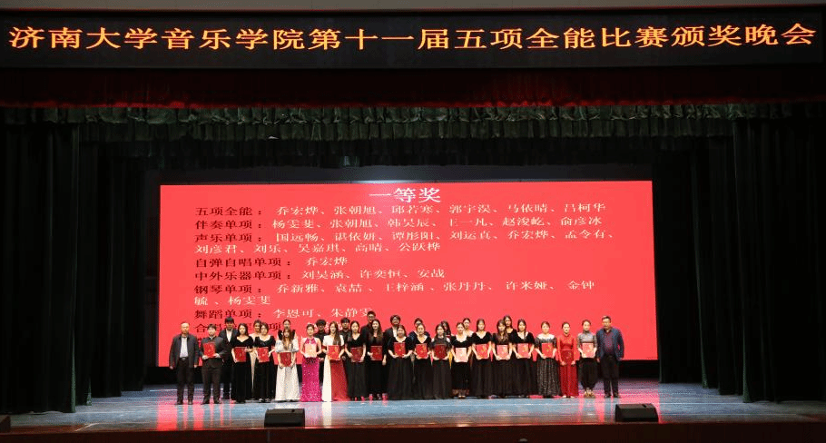 晚会伊始,学校党委常委、统战部部长徐庆国,音乐学院班子成员以及系主任,分别为荣获全能组、单项组一、二、三等奖的同学们进行颁奖并合影留念。
